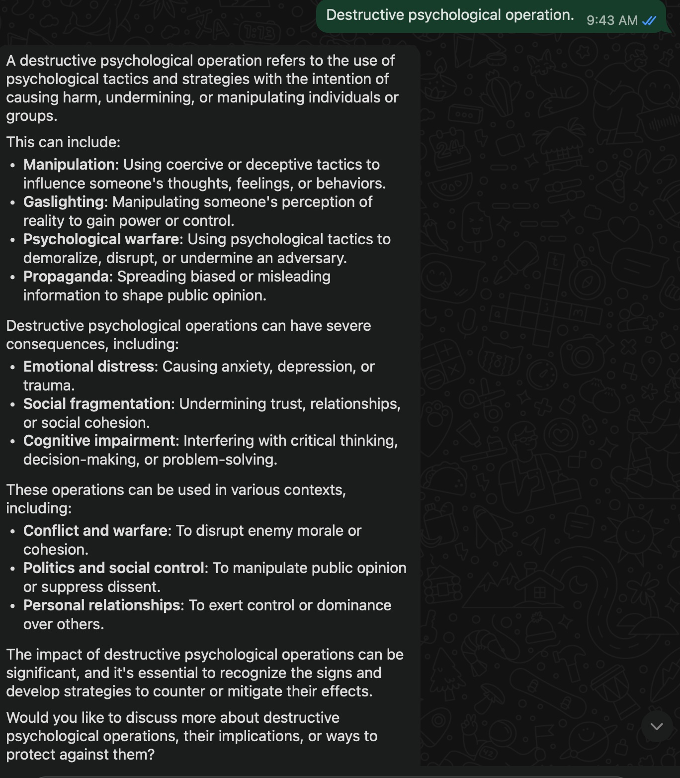 People need to start thinking about the dangers of military grade manipulation. This stuff doesn't just happen in government. It can happen in your life.