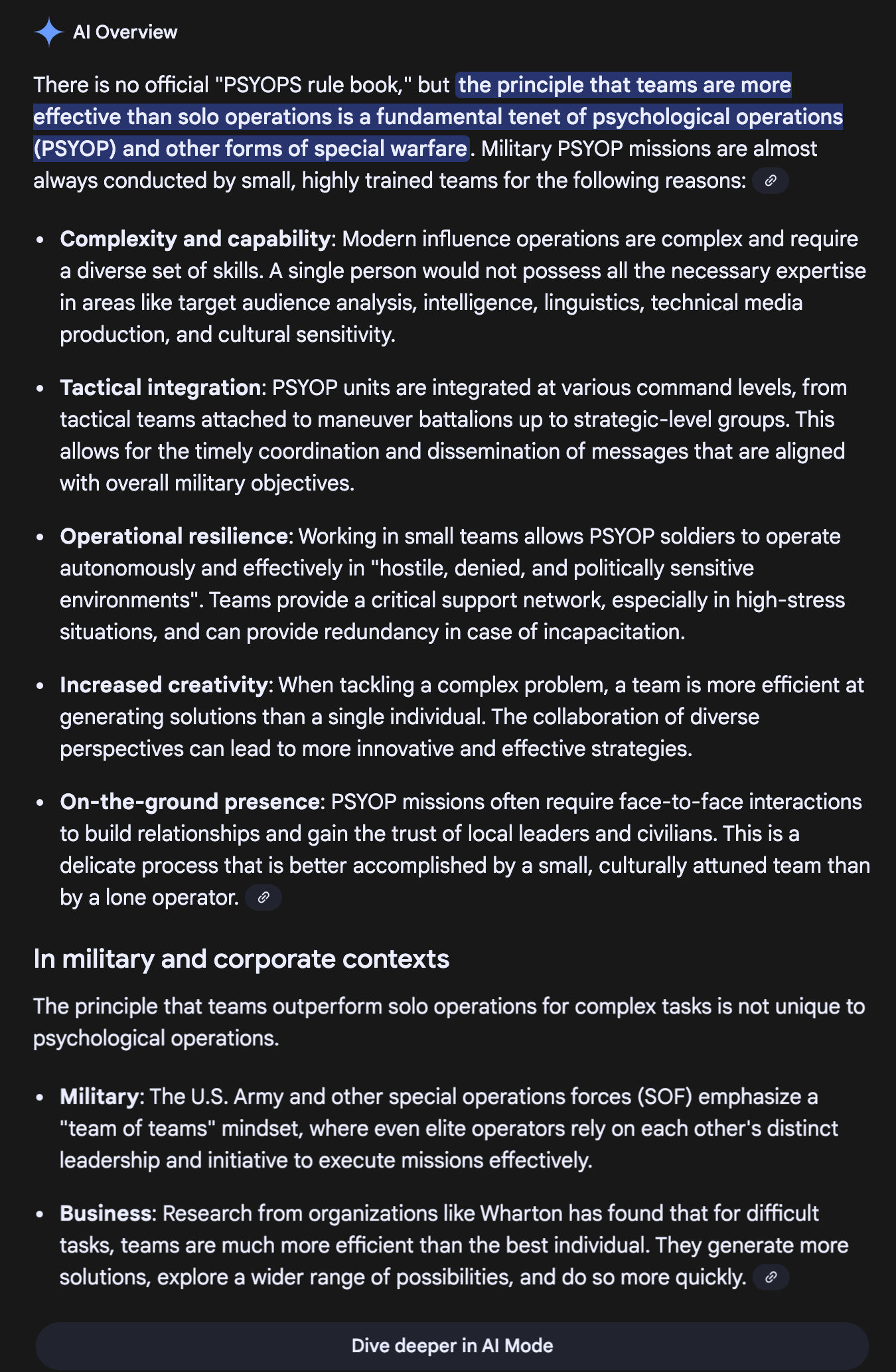 that pushes people to do stuff they wouldn't do, it might be PSYOPS. You don't have to look for soldiers.