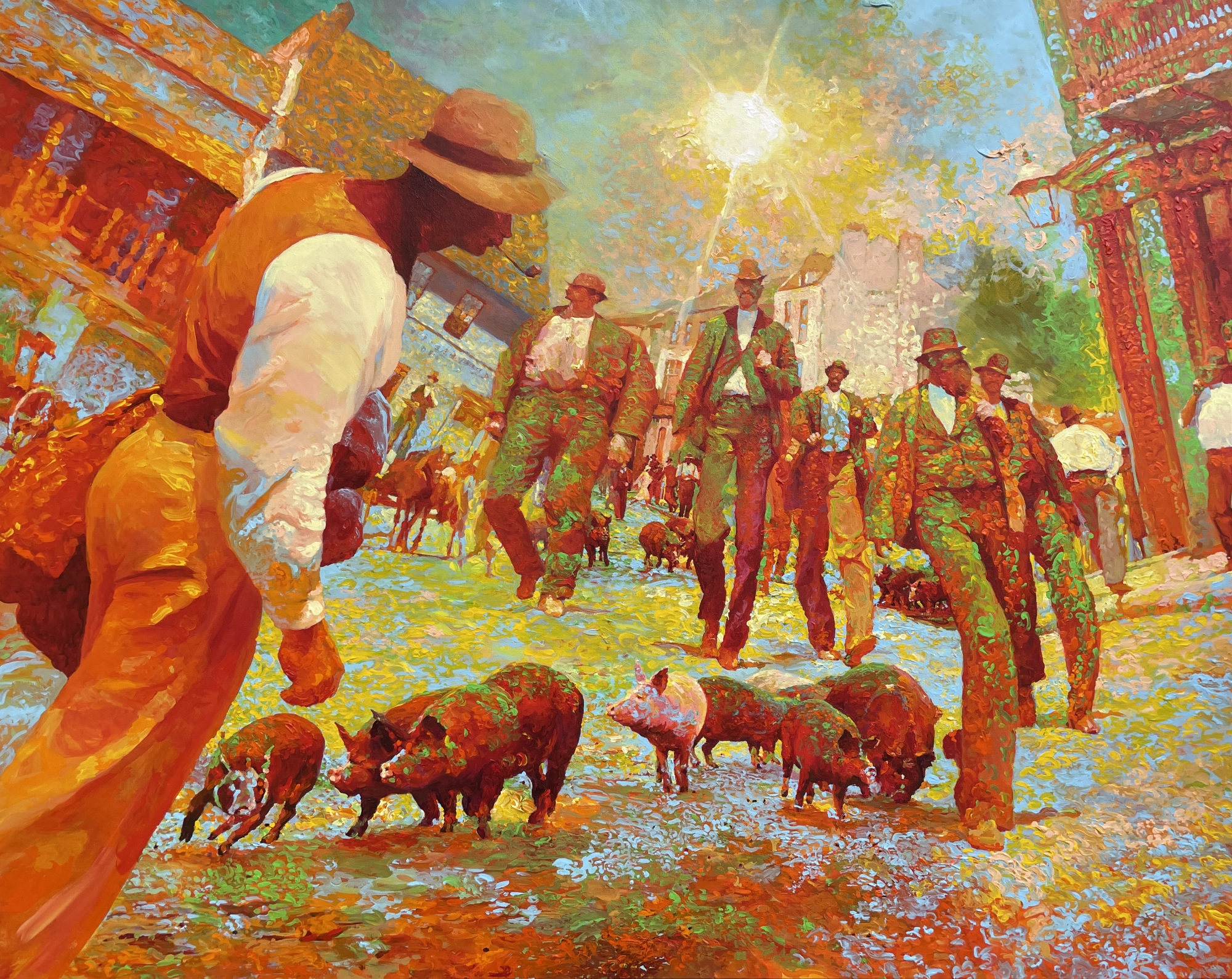 Walkin' down the street. Walkin' them pigs.
